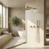 Ensemble de douche en finition or brossé, équipé d'une douchette à main au design épuré et de deux poignées de commande simultanées. Le ciel de douche encastré est un véritable chef d'oeuvre. Cet ensemble de douche est constitué de laiton et d'alliage d'acier inoxydable pour une durabilité inégalée.